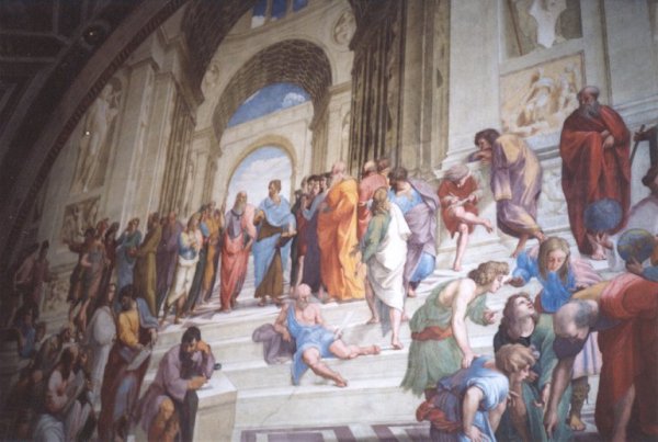 Philosophenschule von Raffael und die Sixtinische Kapelle. Anschließend