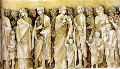 wohl Mitglieder der Herrscherfamilie, Senatoren, Offizielle, kleine Famliengruppen.