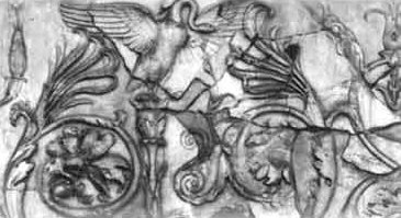 Die abgebildeten Schwäne stellen Bezug zu Apollo, dem Lieblingsgott