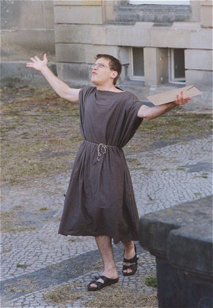 schon mit 7 Jahren seinem Lehrer die Schreibtafel auf dem Kopf zerschlägt."
