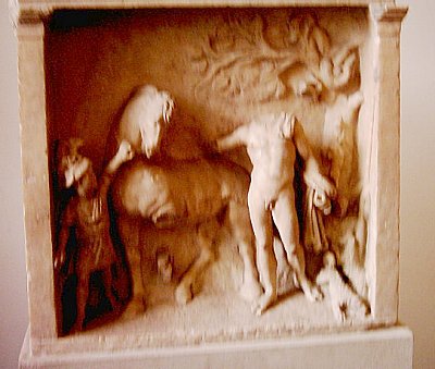 Rechte Abb: Menelaos fürht die wiedergewonnene Helena fort