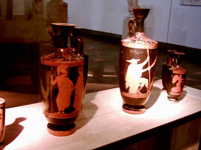 Auf diesen Salbölflaschen sind Mythen abgebildet.