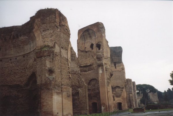 wir bei strömendem Regen die Caracalla-Thermen - im frigidarium